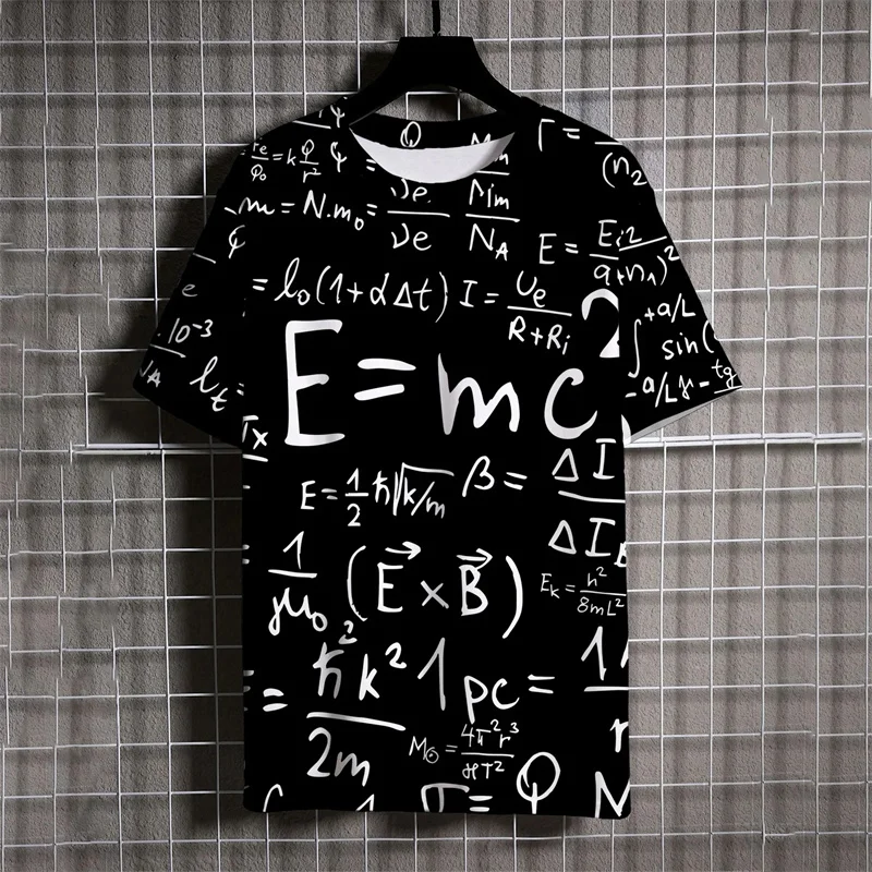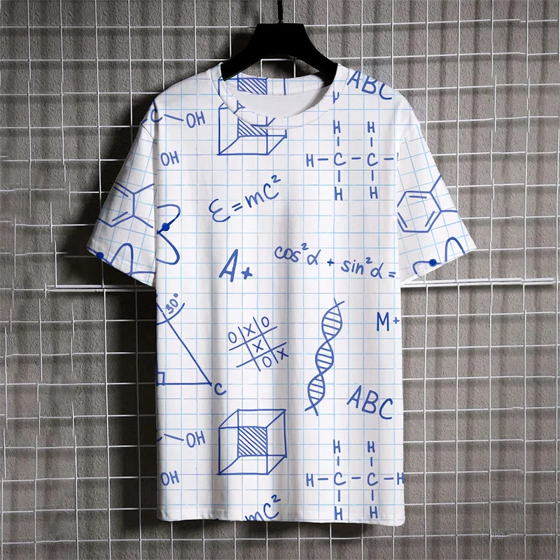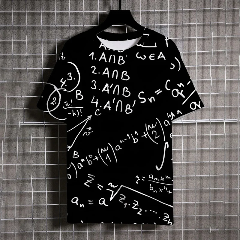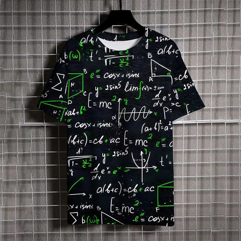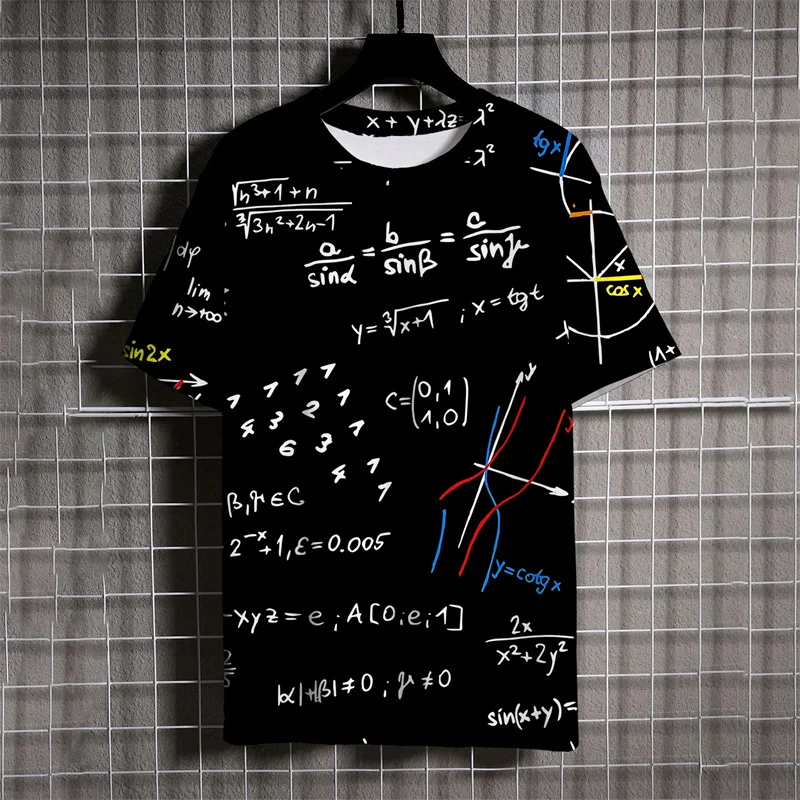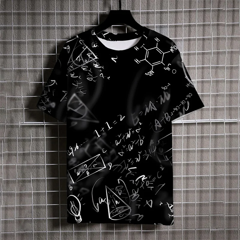 This 3D printed math formula T-shirt is designed for men who enjoy science-inspired style. Featuring a bold experiment-themed graphic and a relaxed fit.
