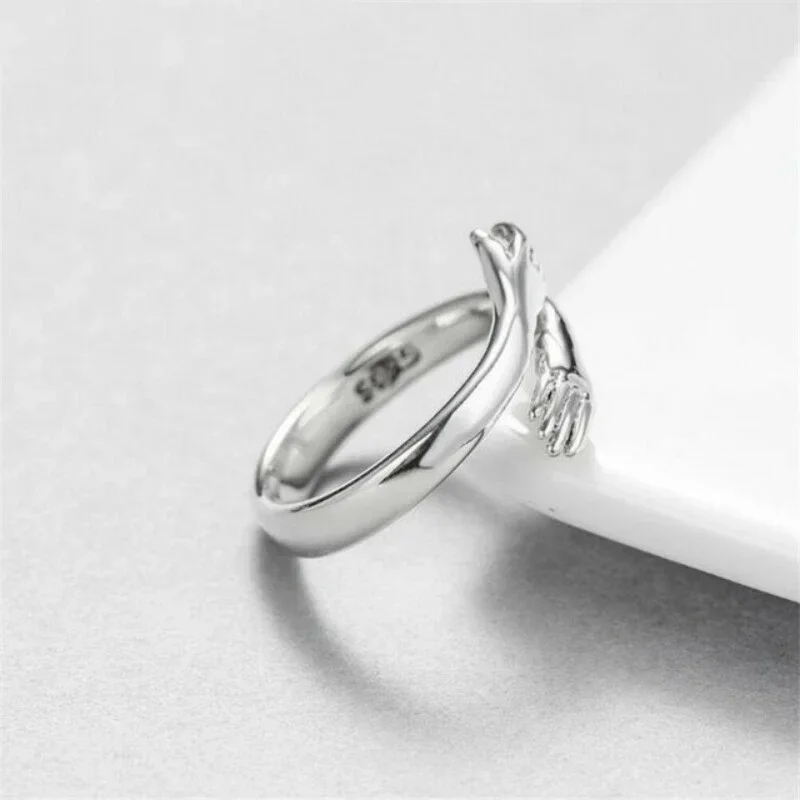 Elegant hug hands ring with a simple and classic design, featuring gold and silver colors. Perfect for women and girls, ideal for parties, weddings, or everyday elegance. A beautiful symbol of love and connection, and a perfect gift choice.