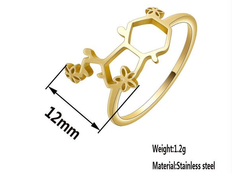 Kinitial Stainless Steel Serotonin Molecule With Flower Rings For Women Female Dainty Science Chemistry Jewelry Ring Gift