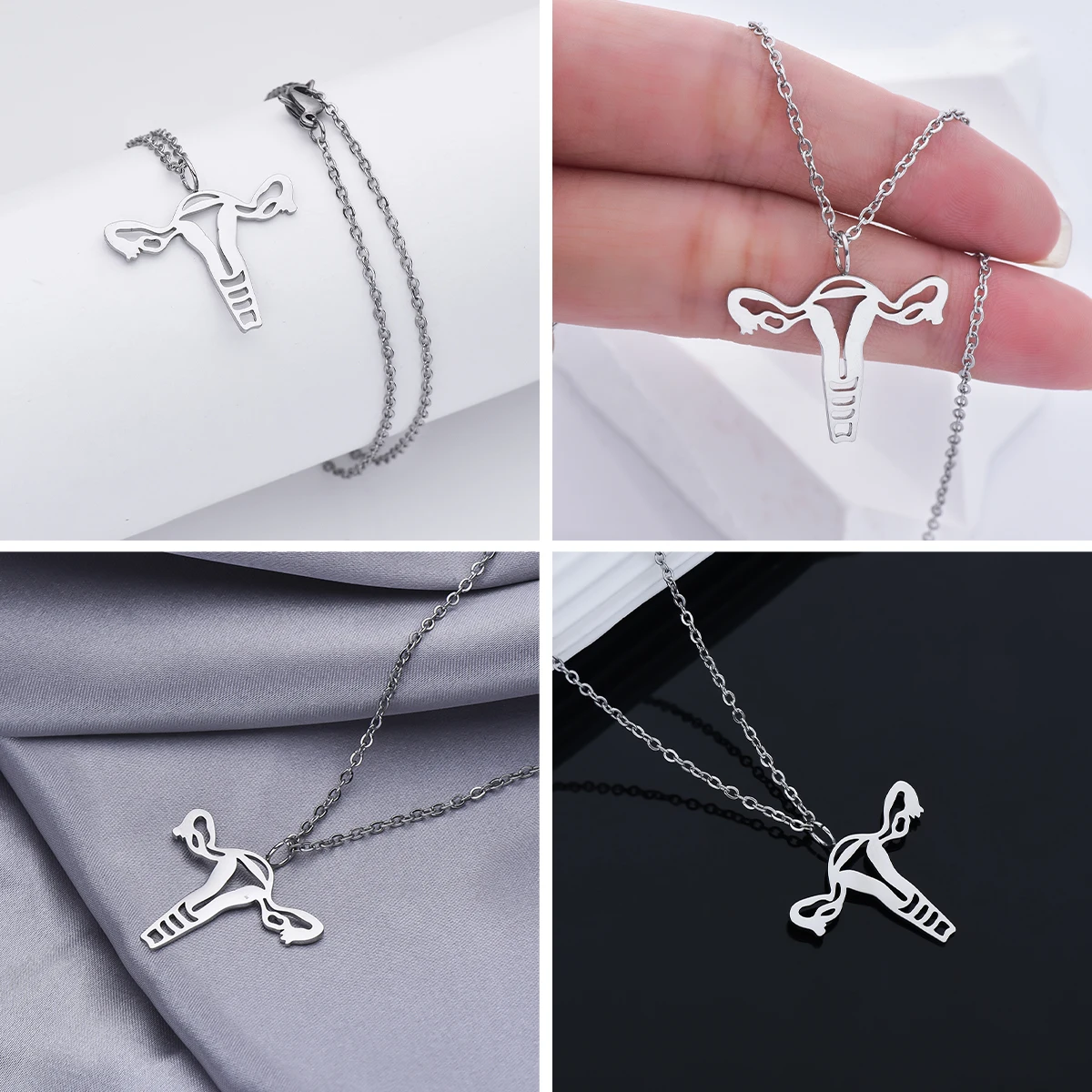 Harong Medical Stainless Steel Pendant Necklaces for Doctors Nurses Anatomical Heart Uterus Organ Hollow Collar Jewelry Gifts