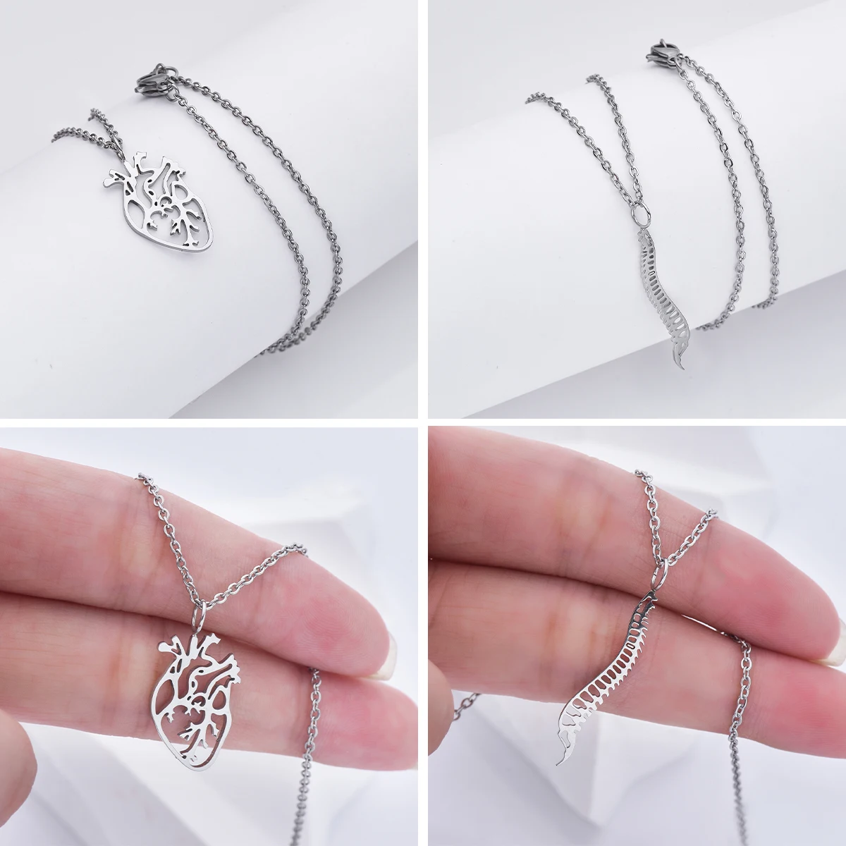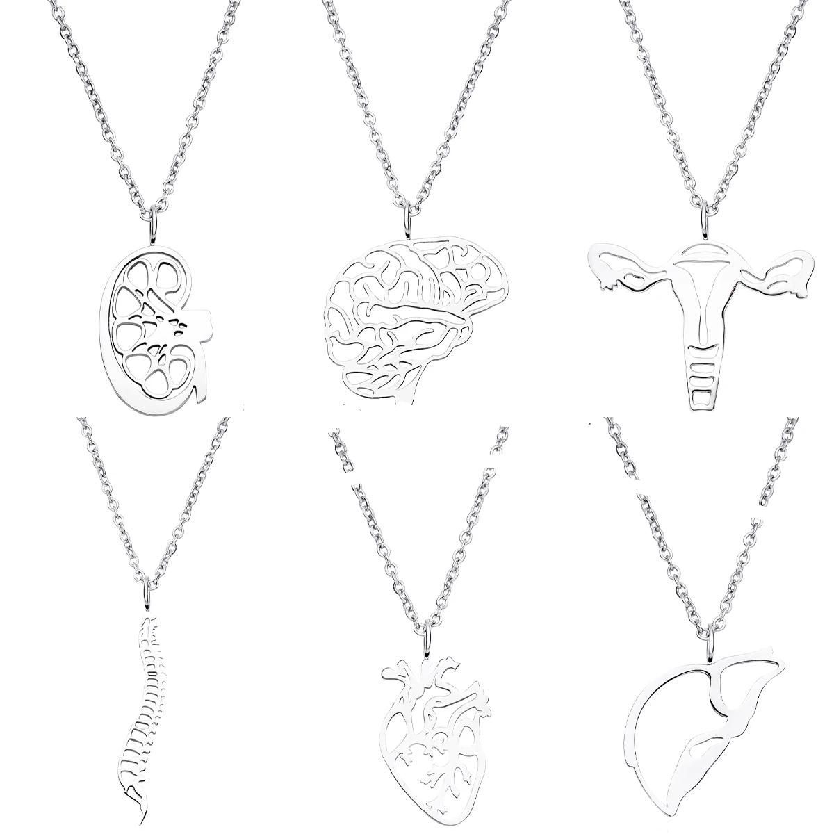 Medical Stainless Steel Pendant Necklaces for Doctors Nurses Anatomical Heart Uterus Organ Hollow Collar Jewelry Gifts